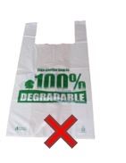 Degradable bags are not permitted – degradable simply means breakdown, or break into smaller pieces, which is equally damaging in the environment as an intact plastic bag.